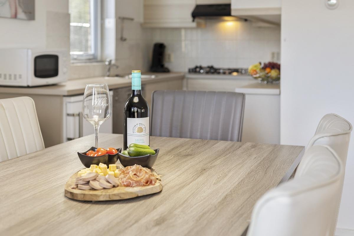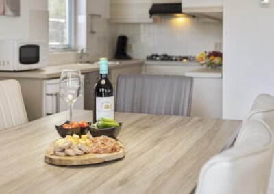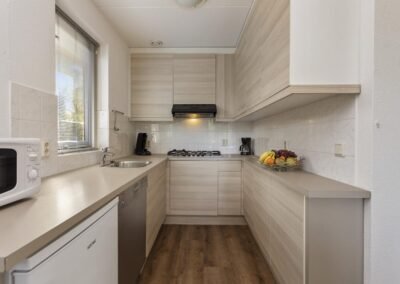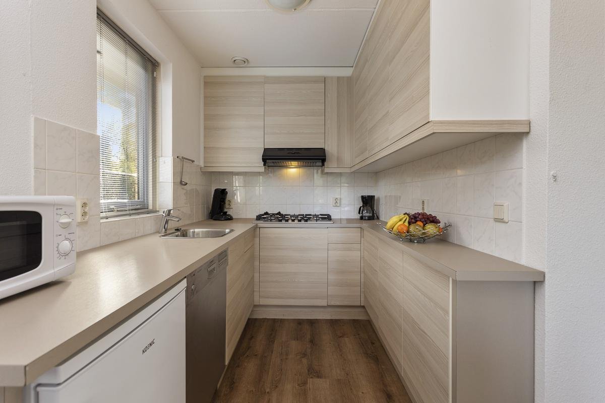 De open keuken is van alle gemakken voorzien. Er is een energiezuinig koelkast, Senseoapparaat, koffiezetapparaat, waterkoker, magnetron, vaatwasser en gaskookplaat.
