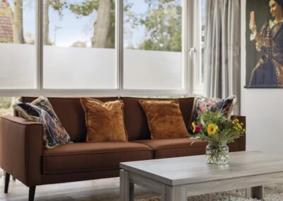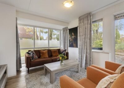 De sfeervol ingerichte woonkamer is voorzien van comfortabele meubels en goede (sfeer-) verlichting. TV kijken kunt u via een smart-TV die gekoppeld is aan een snelle internetverbinding, glasvezel.