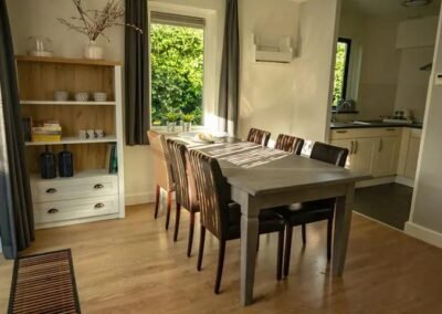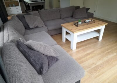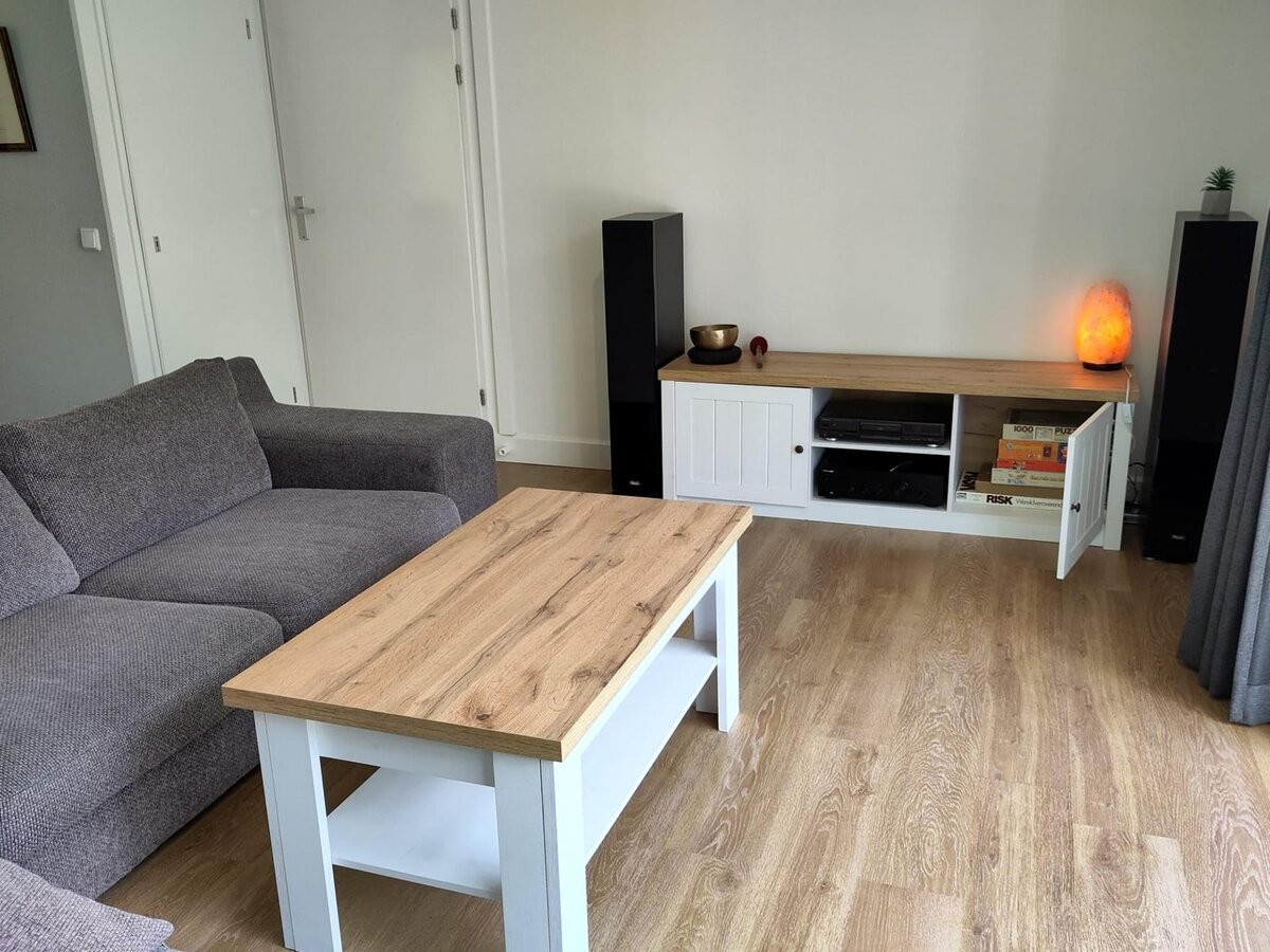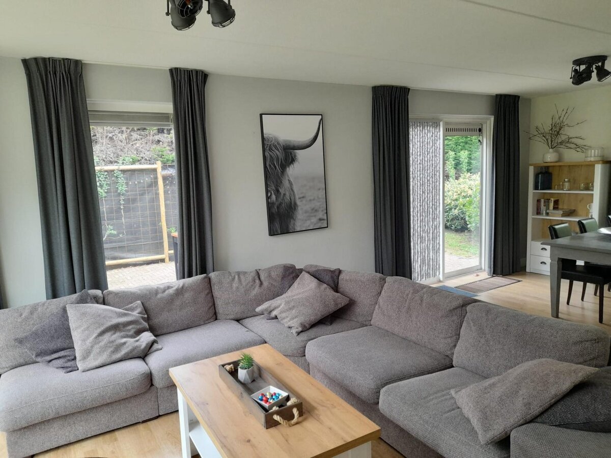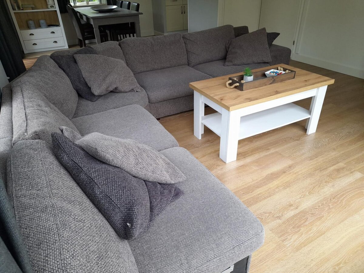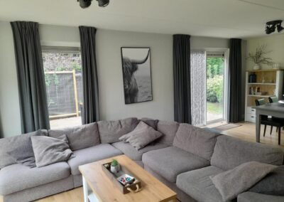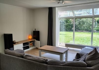 De sfeervol ingerichte woonkamer is voorzien van comfortabele meubels en goede (sfeer-) verlichting. Onlangs is de bestaande bank vervangen door een ruime hoekbank. TV kijken kunt u via een smart-TV die gekoppeld is aan een snelle internetverbinding.